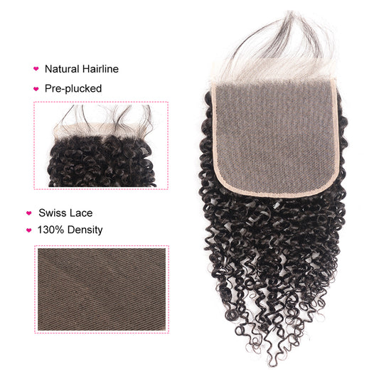 Raw Hair Lace Closure 5X5 Inch Deep Curly Preplucked Natural Color | Lonohair